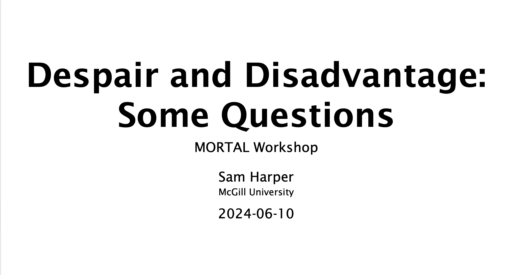 Despair and Disadvantage: Some Questions
