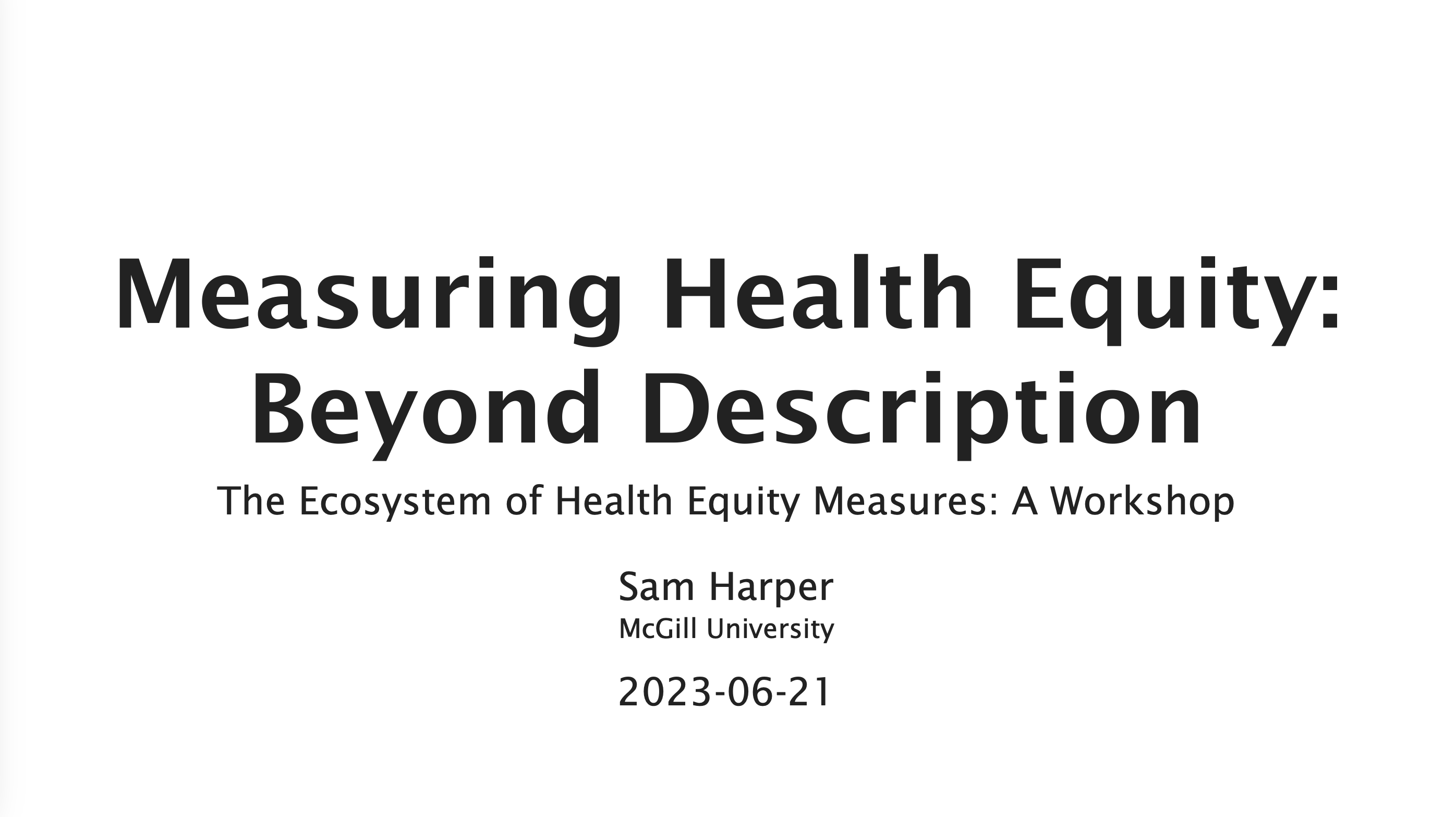 Measuring Health Equity: Beyond Description